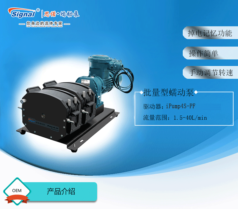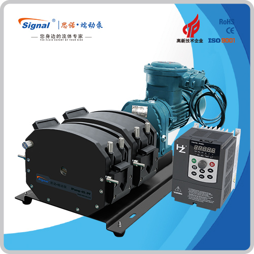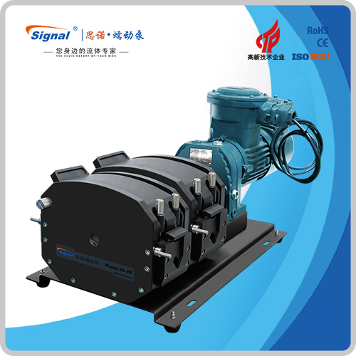 流量范圍:1.5-40L/min 彈性壓管結構,軟管壽命長,非常適合大流量液體傳輸 免維護交流減速電機驅動,變頻器調節轉速 全金屬泵頭,高精度,更可靠 防爆等級DIIBT4,適合易燃易爆環境使用