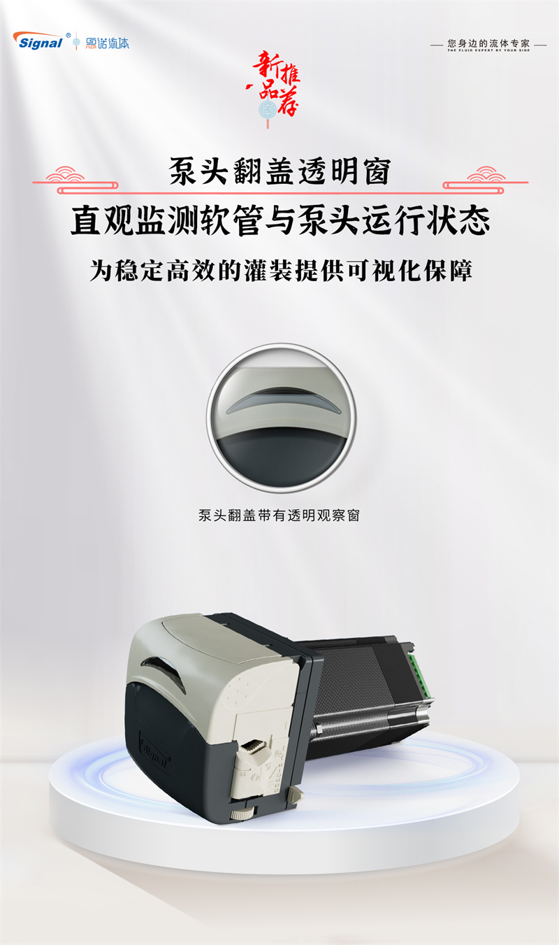 2.?透明視窗,運行可視: 創新設計透明觀察窗口,讓您能夠實時、直觀地監控泵內軟管運行狀態及流體傳輸情況,操作更安心。