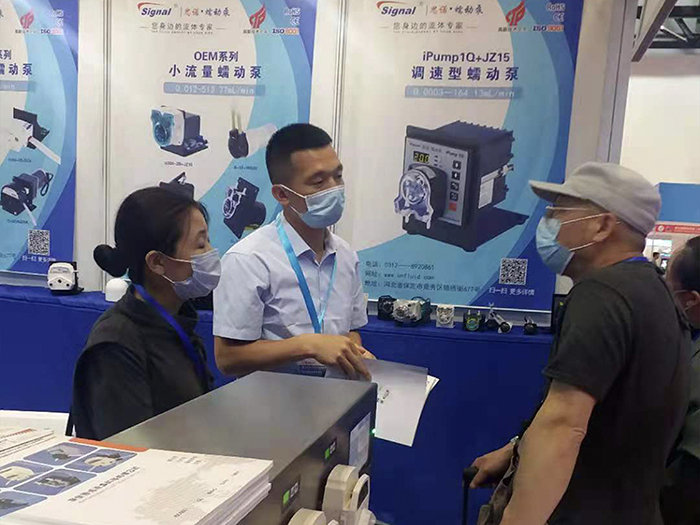保定思諾流體科技有限公司和眾多行業知名企業同臺展示。展會現場數以千計的專業儀器設備、蠕動泵、裝備、耗材、配件、工程及管理系統等多方向多層次的新產品、技術、新成果琳瑯滿目。在4010展位思諾現場展出了十余款人氣熱銷、原研新品蠕動泵,吸引了大量參展嘉賓駐足觀看,思諾銷售代表們鉚足了十二分精神,為嘉賓們答疑解惑,現場熱鬧非凡。